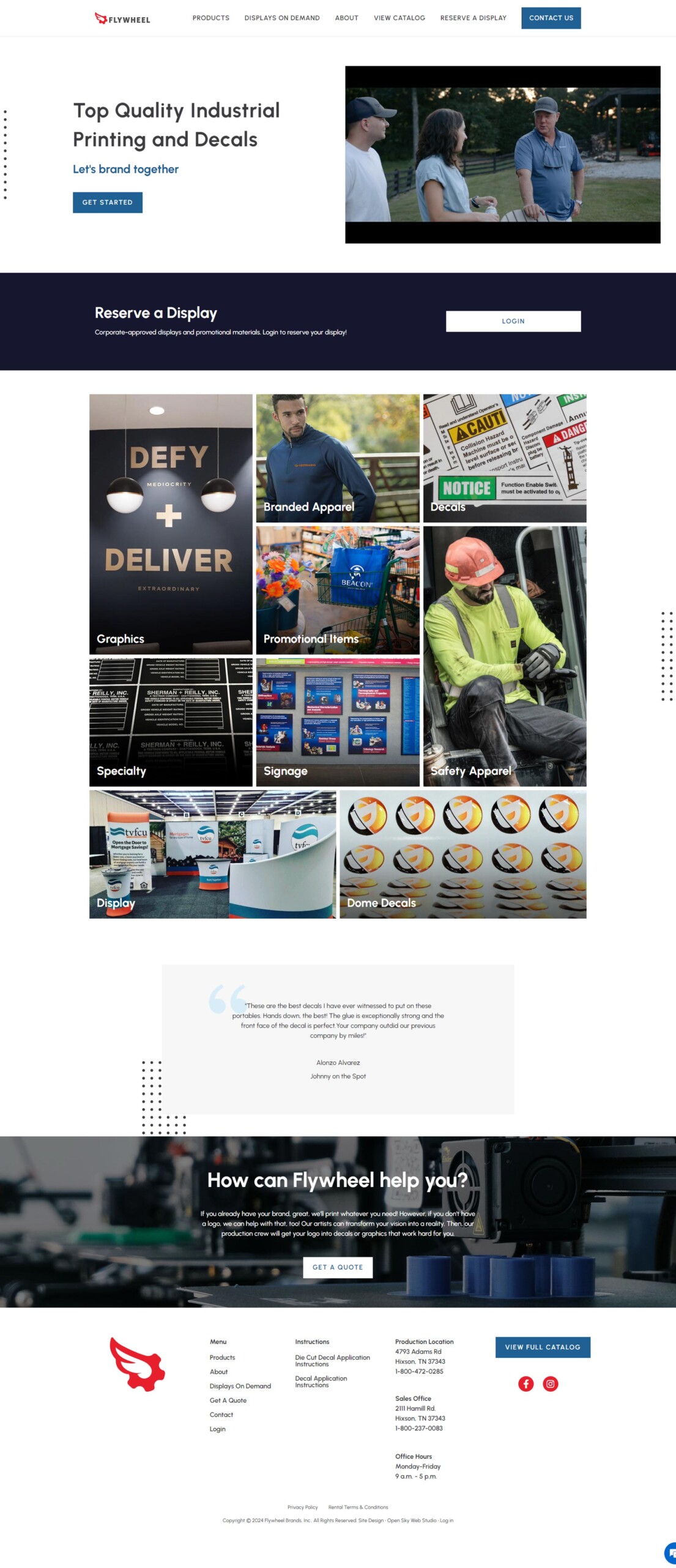 We successfully revamped the online presence of Dynamic Decals, a Flywheel brand, by consolidating multiple platforms into a single, cohesive website. The new site effectively streamlines the user experience by integrating all product offerings and services into one centralized hub, making it easier for customers to navigate and manage their needs.